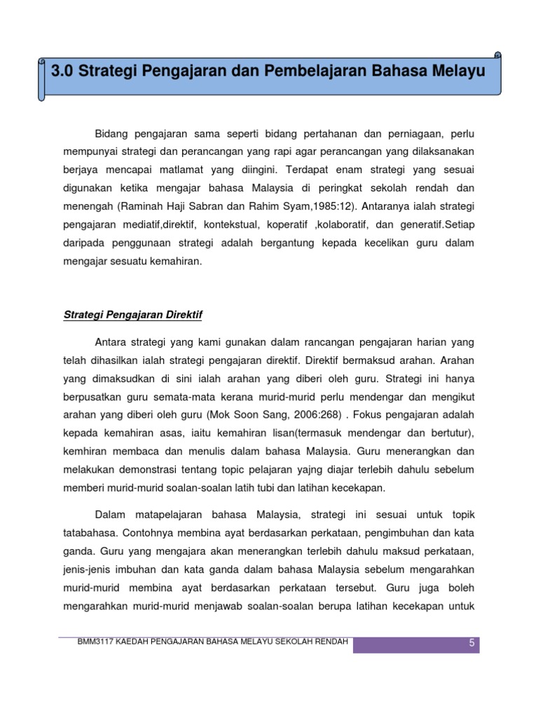 3 0 Strategi Pengajaran Dan Pembelajaran Bahasa Melayu Pdf